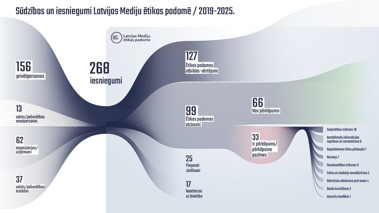 - mediju, mediju uzņēmumu un žurnālistu sūdzību izskatīšana un atzinuma sniegšana ētikas pārkāpuma, mediju vai vārda brīvības ierobežojuma gadījumā;