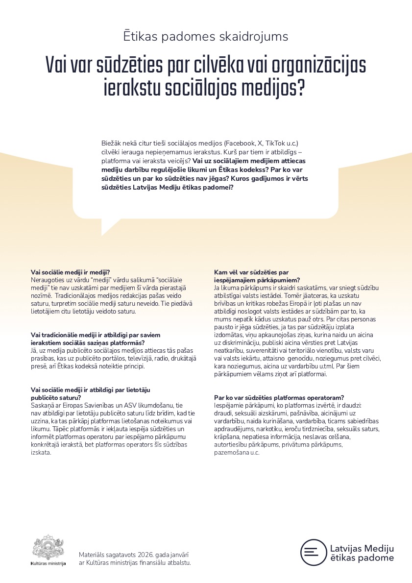 - Vai var sūdzēties par cilvēka vai organizācijas ierakstu sociālajos medijos?